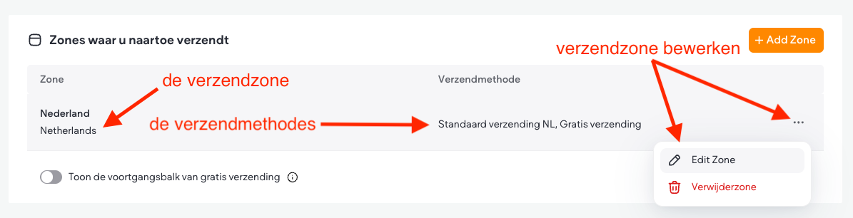 - Klik op + Verzendzone toevoegen als er nog geen verzendzones zijn.