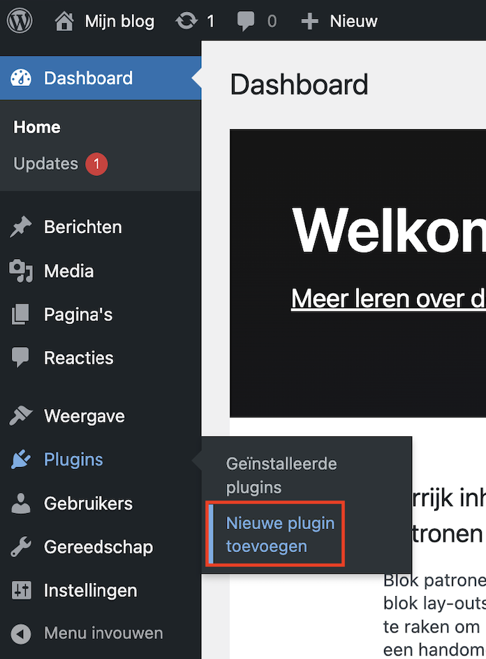 2. Ga naar Plugins > Nieuwe plugin installeren