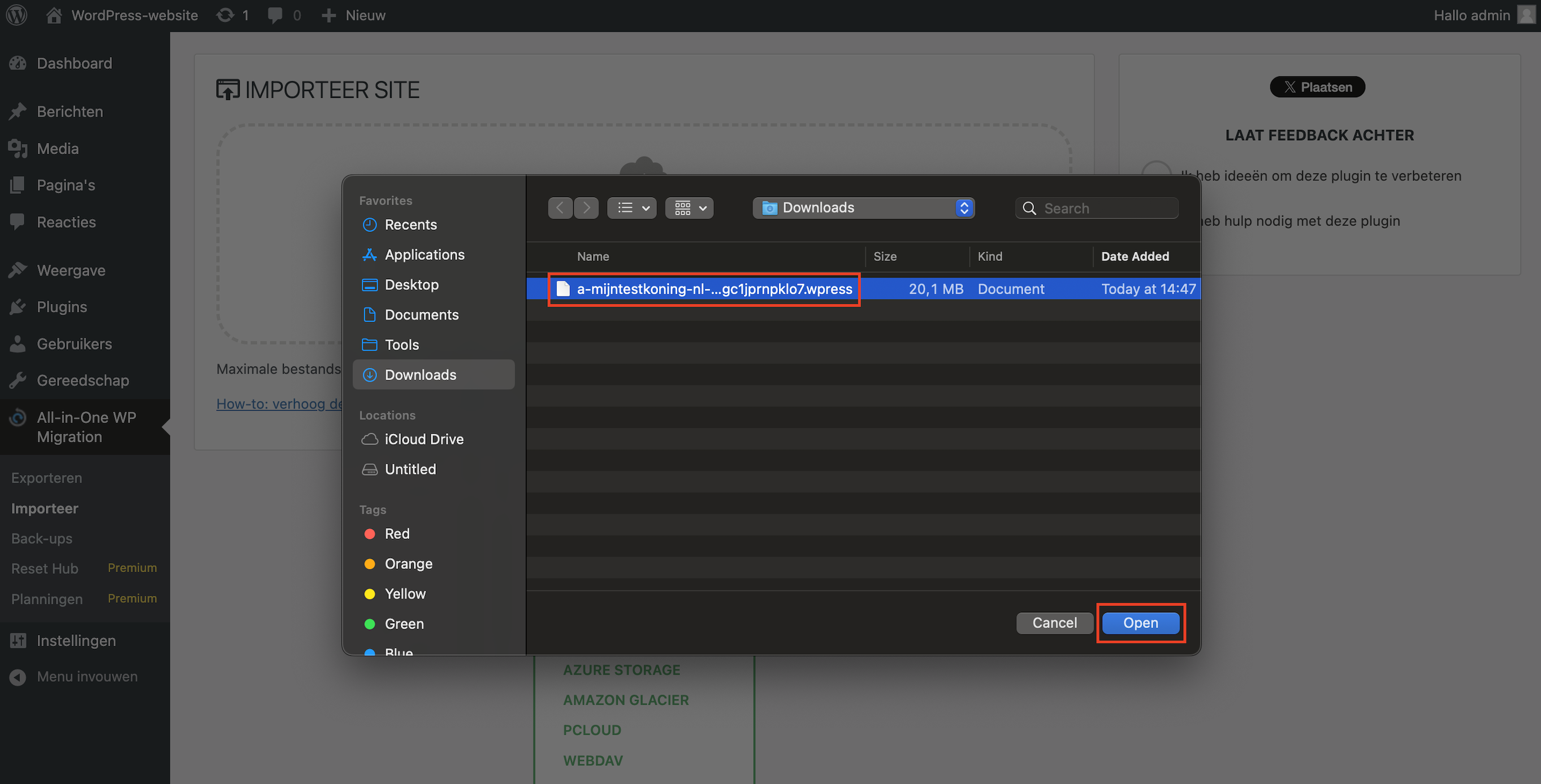 3. Upload het exportbestand dat je eerder hebt gedownload.