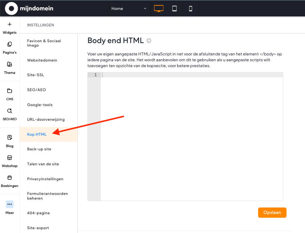 - Klik op Kop HTML.
