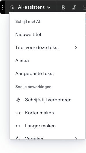 te klikken krijg je allemaal opties waar de AI -assistent bij kan helpen.