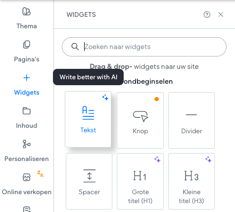 Widgets zijn de bouwstenen van jouw websitemaker website. In dit artikel zullen wij de "Tekst" widget toelichten.