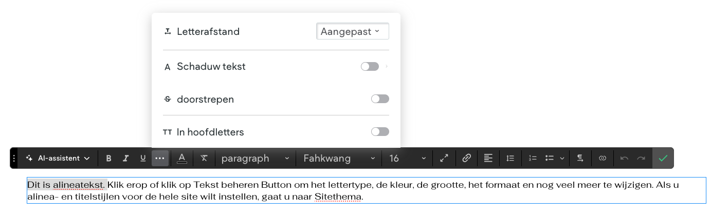 kan je gebruiken om het lettertype van de tekst wijzigen. De websitemaker heeft een flinke hoeveelheid lettertypes die standaard beschikbaar zijn. Staat jouw gewenste lettertype er niet tussen? Geen probleem! Zo voeg je je eigen lettertype toe.