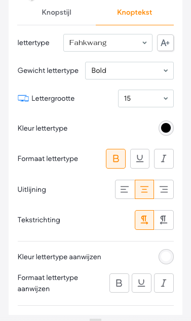 Je kan hier het lettertype, lettergrootte en de kleur van je knoptekst wijzigen.