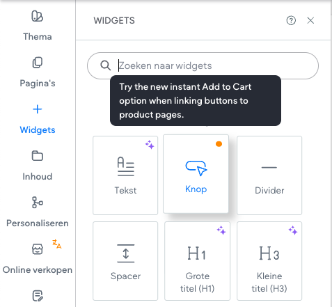 Widgets zijn de bouwstenen van jouw websitemaker website. In dit artikel zullen wij de "Knop" widget toelichten.