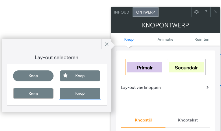 Via "Lay-out" kan je de vorm van je knop wijzigen. Zo kan je kiezen voor een platte rechthoekige knop, maar ook ovale knoppen óf knoppen met een extra icoontje vallen binnen de mogelijkheden!