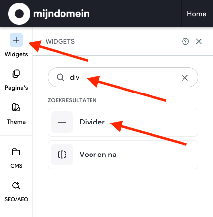 Je kan de "Divider" widget plaatsen door deze te slepen naar de gewenste plek. Simpel dus!
