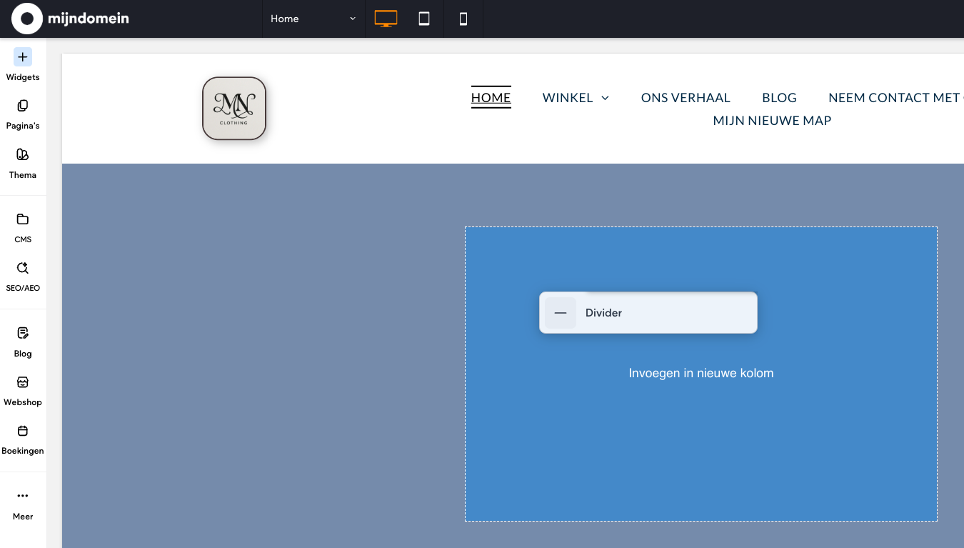 Widgets zijn de bouwstenen van jouw websitemaker website. In dit artikel zullen wij de "Divider" widget toelichten.