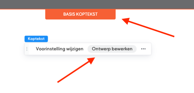 Als je al gebruik maakt van de Editor 2.0 Kun je via "koptekst" naar "Ontwerp bewerken".