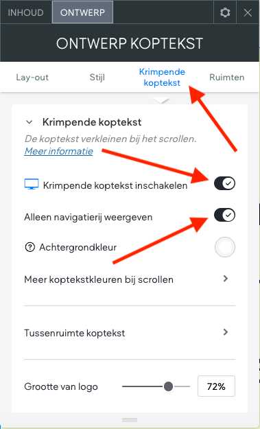 Schakel de Krimpende koptekst in.