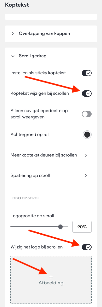 Je kunt een tweede koptekst logo gebruiken dat verschijnt als je op de website naar beneden scrolt. Dit alternatieve logo vervangt het logo dat wordt weergegeven wanneer de pagina voor het eerst wordt geladen of wanneer de gebruiker naar de bovenkant van de pagina scrolt. Gebruik deze functie om het logo te benadrukken of op een interessante manier te presenteren.