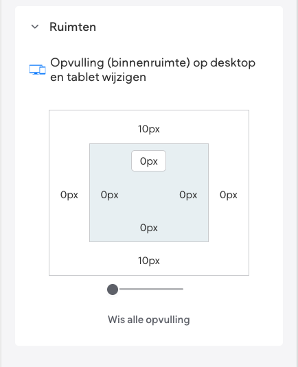 In de bovenstaande afbeelding zie je terug wat je kan instellen binnen het inhoud venster.
