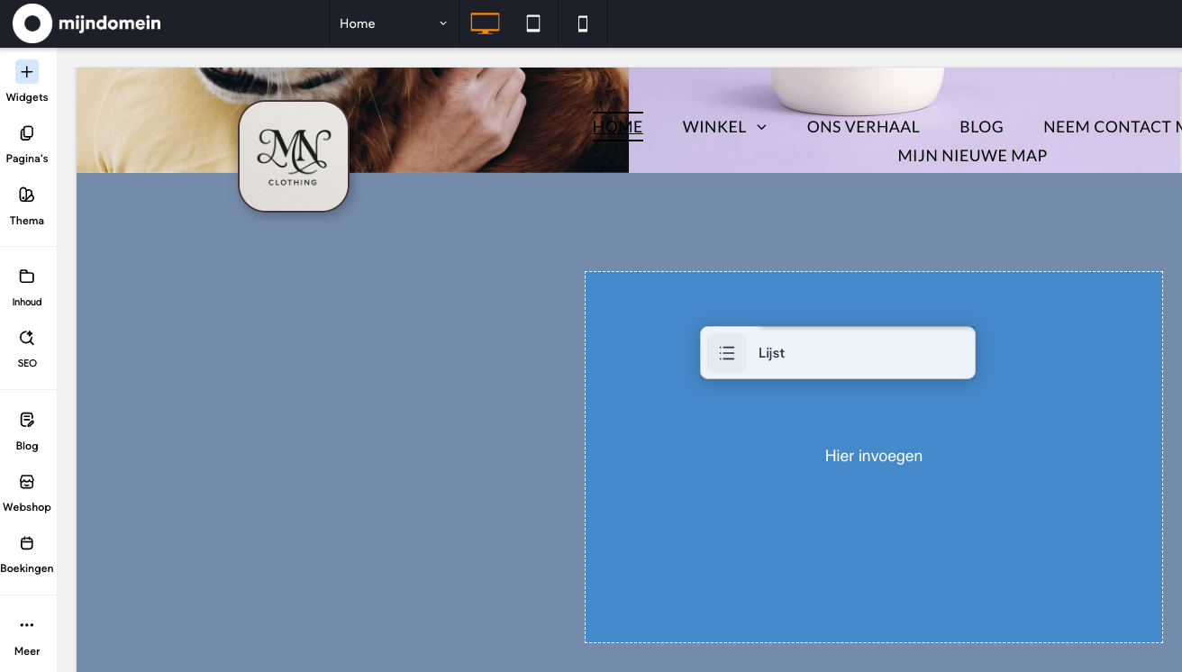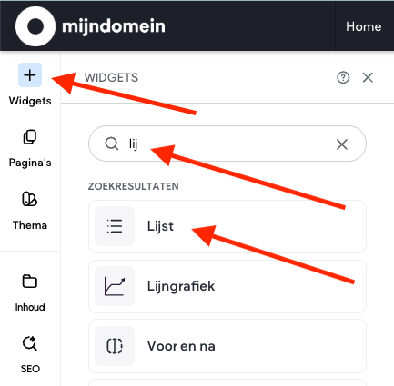 Je kan de "Lijst" widget plaatsen door deze te slepen naar de gewenste plek. Simpel dus!