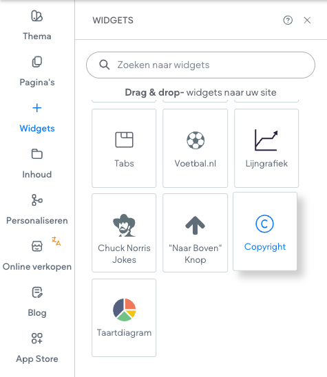 Widgets zijn de bouwstenen van jouw websitemaker website. In dit artikel zullen wij de "Copyright" widget toelichten.
