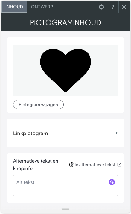 Je kan een "Alt tekst" meegeven aan jouw pictogram. Dit is gunstig voor je SEO! (Klik hier voor meer informatie over SEO en jouw websitemaker website).