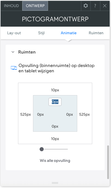 Wil je binnen de kaders van je Pictogram meer ruimte creëren? Pas dan de waarden in het binnenste vierkantje in.